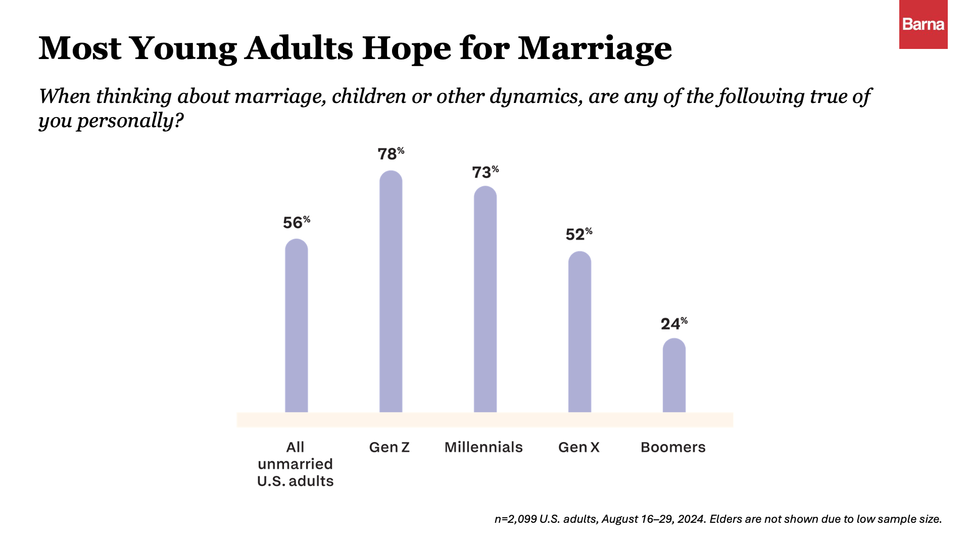 Among the unmarried, most still aspire to marry someday—78 percent of Gen Z and 73 percent of Millennials say they hope to wed. Yet their hesitation suggests they’re approaching marriage with caution, weighing stability and personal readiness in new ways.